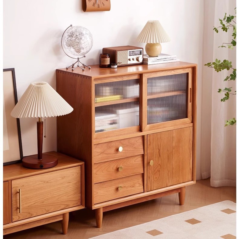 北米黒胡桃木全実木島台食卓現代シンプルさくらんぼ木原木多機能レストランロッカー