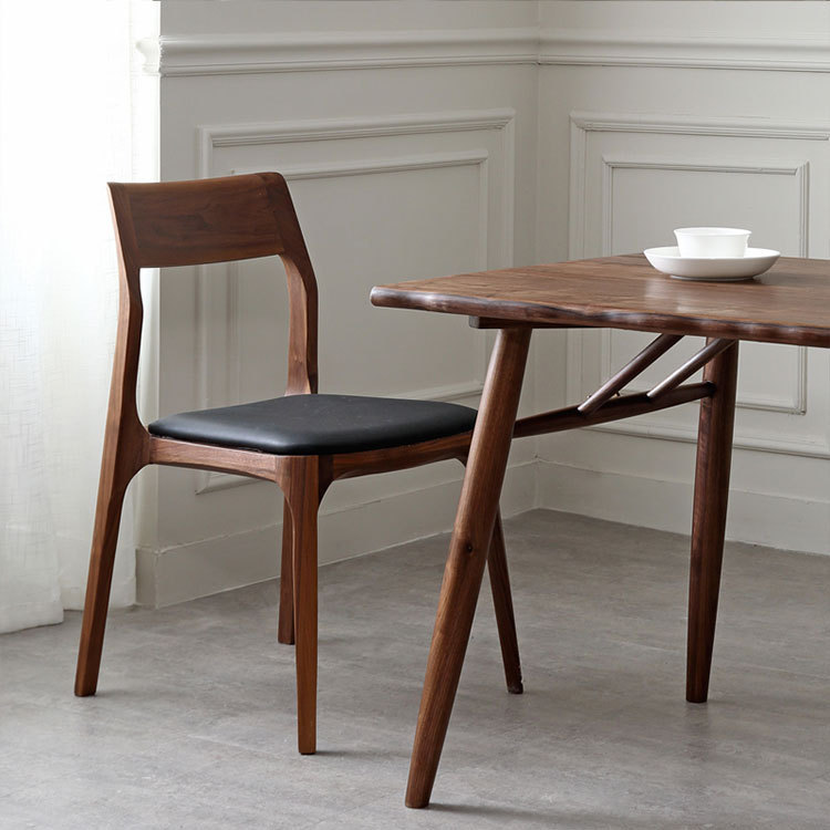 北欧の実木の食事の椅子のレストランの家庭用の黒い胡桃の木の現代の簡単な背もたれの椅子は積み重ねてレジャーの実木の椅子を置くことができます。