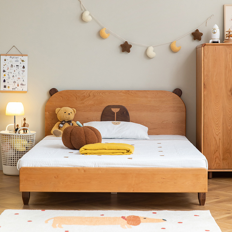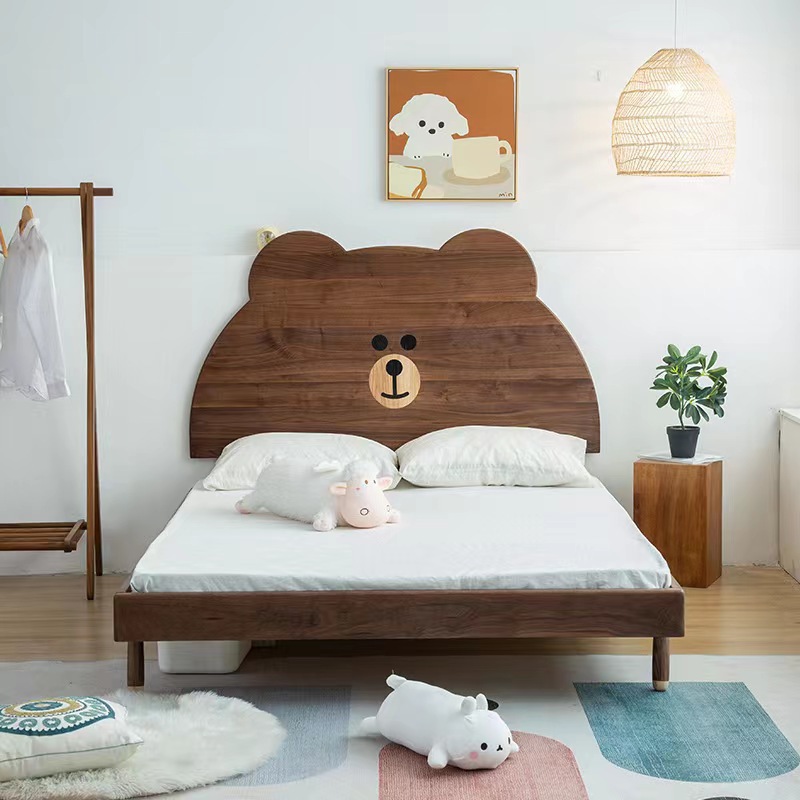 北欧黒胡桃木全実木児童ベッド男の子女の子寝室ベアーベッド桜桃木1.5メートルシングルベッド