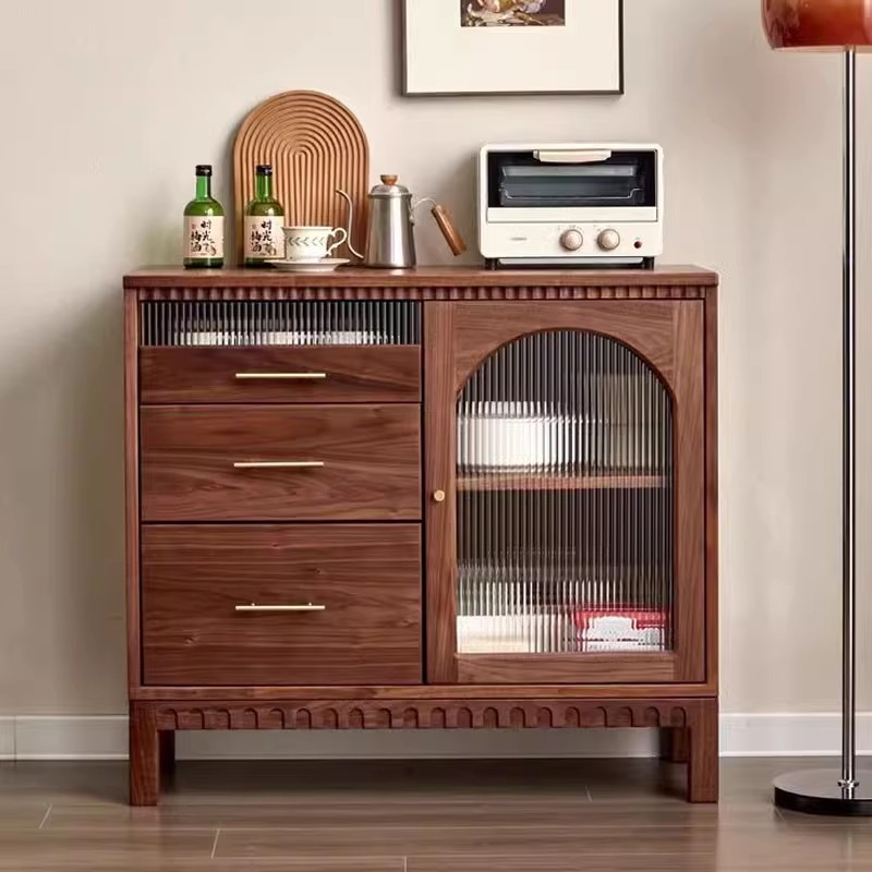 全実木黒胡桃木製サイドキャビネット復古風引き出し付き収納キャビネット北欧レストラン家具壁付きロッカー