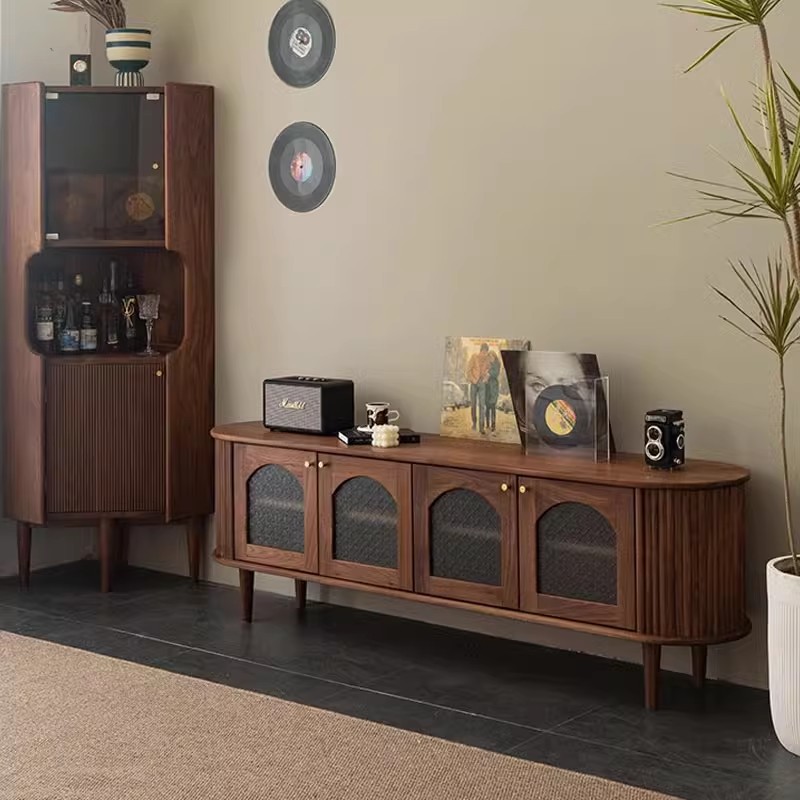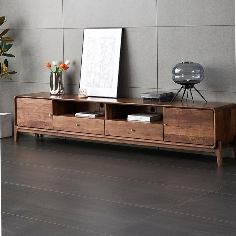 全実木テレビキャビネット北米黒胡桃木原木現代シンプルリビングルーム床置きテレビサイドキャビネットティーセット