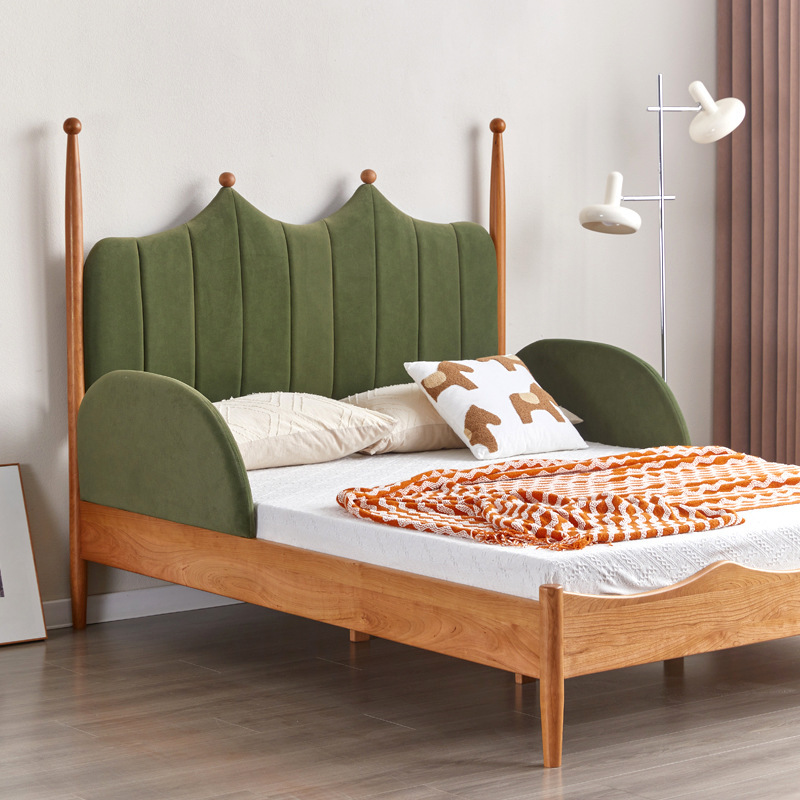 北欧純実木児童ベッド北米さくらんぼ木麦格ベッドソフトバッグシングルベッドレース現代シンプルスタイル
