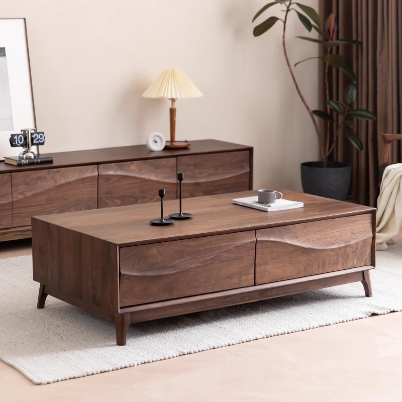 全実木北米黒胡桃波極簡茶何桜木実木長方形客間家庭用茶テーブル