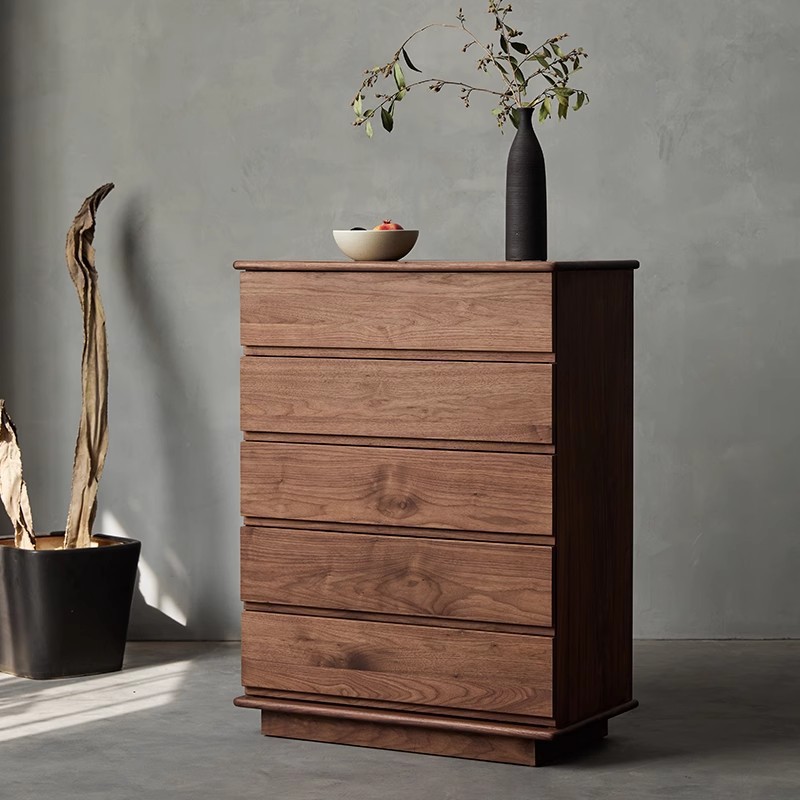 北米黒胡桃実木五斗盤寝室ロッカーシンプル現代客間収納盤北欧原木サイドキャビネット