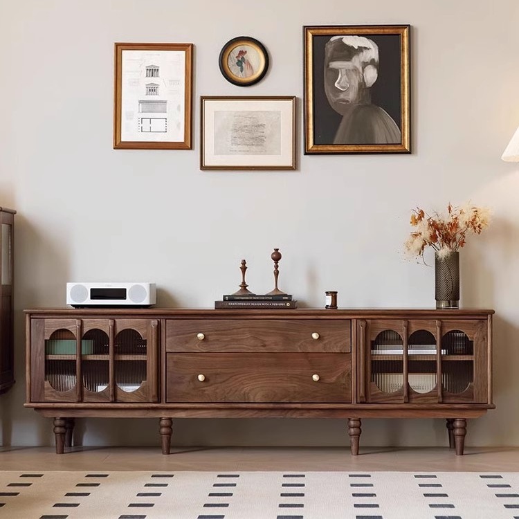 北欧実木テレビキャビネット北米黒胡桃木原木現代シンプル収納ロッカー中古リビング家具
