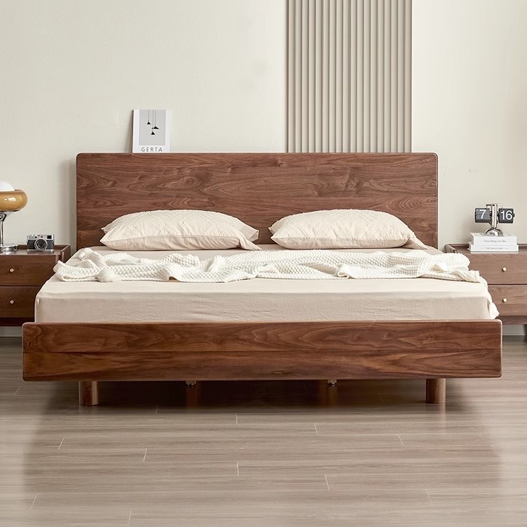 北米黒胡桃木懸濁床全実木床現代北欧主臥ツインベッド1.5メートル1.8メートル高背もたれ