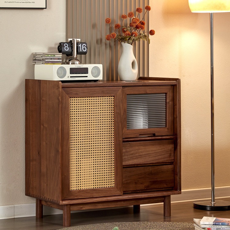北米黒胡桃木製サイドキャビネット現代シンプルな実木レストランロッカー小戸型家庭用リビングルーム茶キャビネット