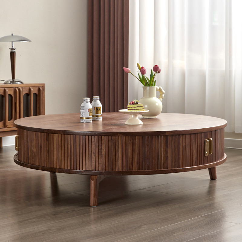 北米黒胡桃全実木円形茶数現代シンプル桜木原木客間多機能貯蔵茶数