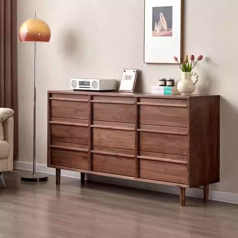 全実木黒胡桃木九斗戸棚シンプル客間引き出しロッカー北米桜桃木寝室ベッドテールキャビネット