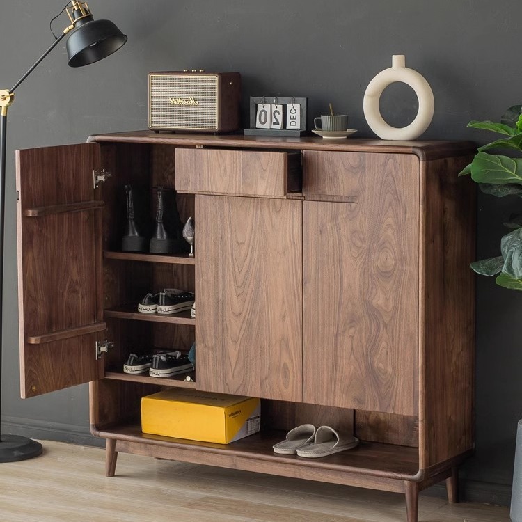 北米黒胡桃木実木下駄箱入戸玄関キャビネット多機能収納靴棚三門家庭用収納キャビネット