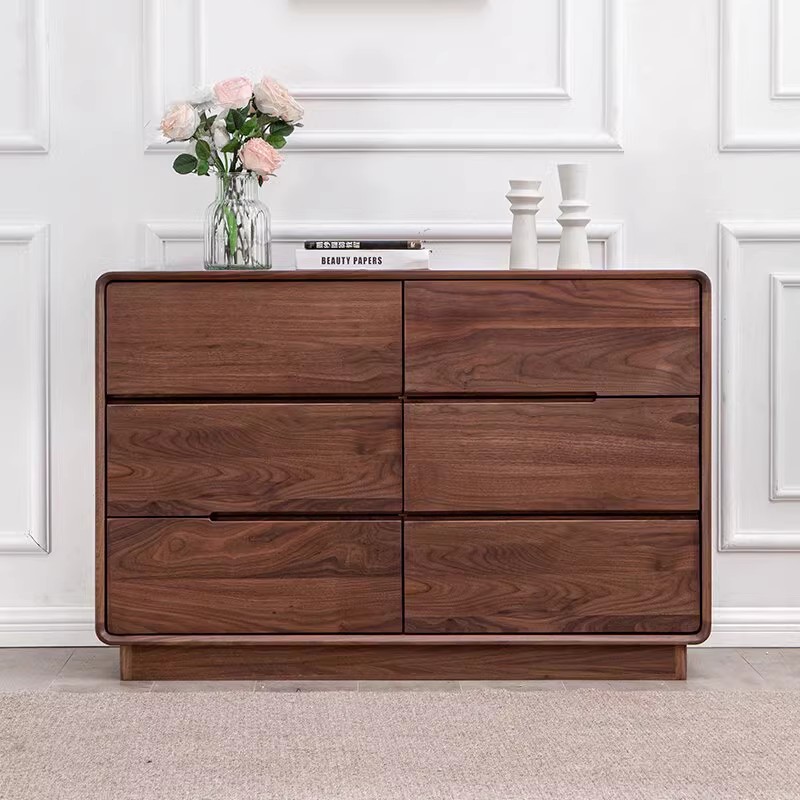 北米黒胡桃木全実木六斗キャビネットシンプル現代寝室収納キャビネット原木ベッド尾ロッカーキャビネット