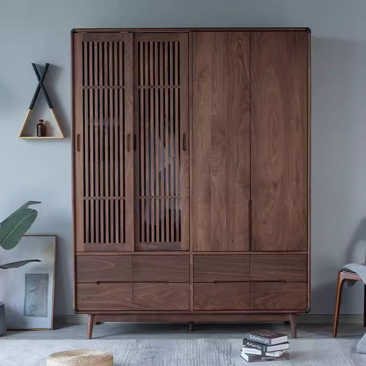 北欧シンプル箪笥黒胡桃木寝室日本式実木原木桜桃木グリル門白オーク収納棚