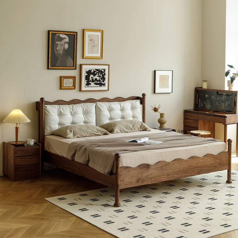 北欧実木黒胡桃木軟包ベッドシンプル復古ウィンザーベッド日本式1.5メートル主臥1.8メートルツインベッド