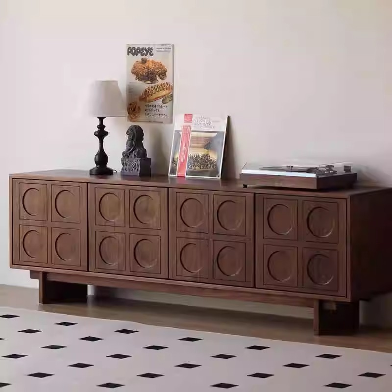 全実木黒胡桃木テレビ盤客間復古家具北米桜桃木中古風着地視聴盤