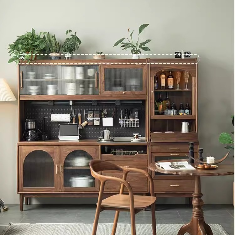 北米黒胡桃木実木サイドキャビネット一体壁付きキャビネット日本式シンプルキャビネット茶水キャビネットレストラン収納キャビネット