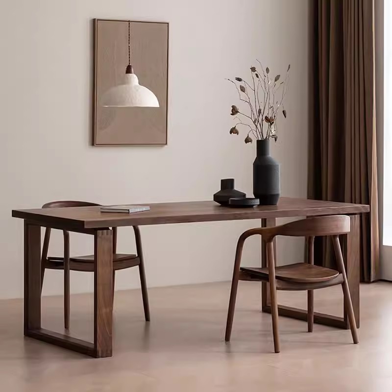 黒胡桃木岩板テーブル実木食卓家庭用北欧原木長テーブル長方形食卓桜桃木大板テーブル