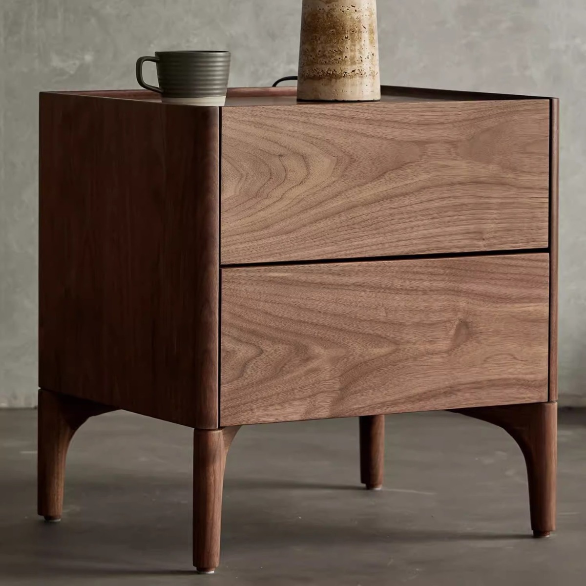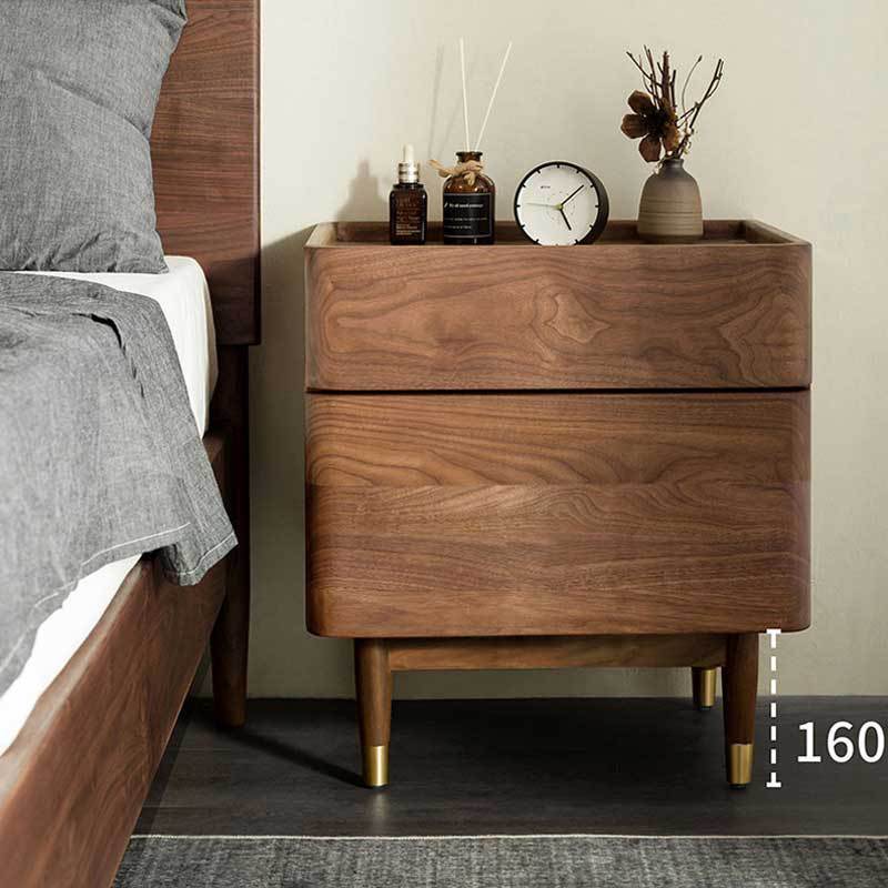 シンプルで現代的な黒胡桃木全実木ベッドの頭箱北欧桜木寝室ベッドサイドキャビネット