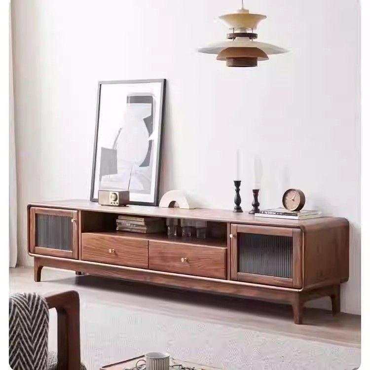 黒胡桃木全実木テレビキャビネット茶数組み合わせ北欧客間高低酒キャビネットシンプル桜桃木収納キャビネット