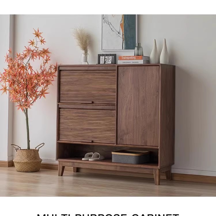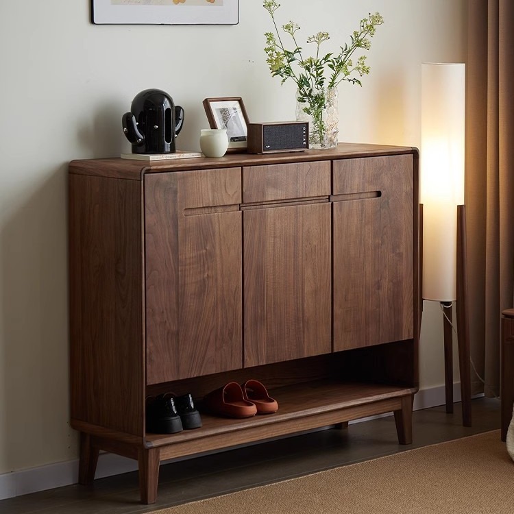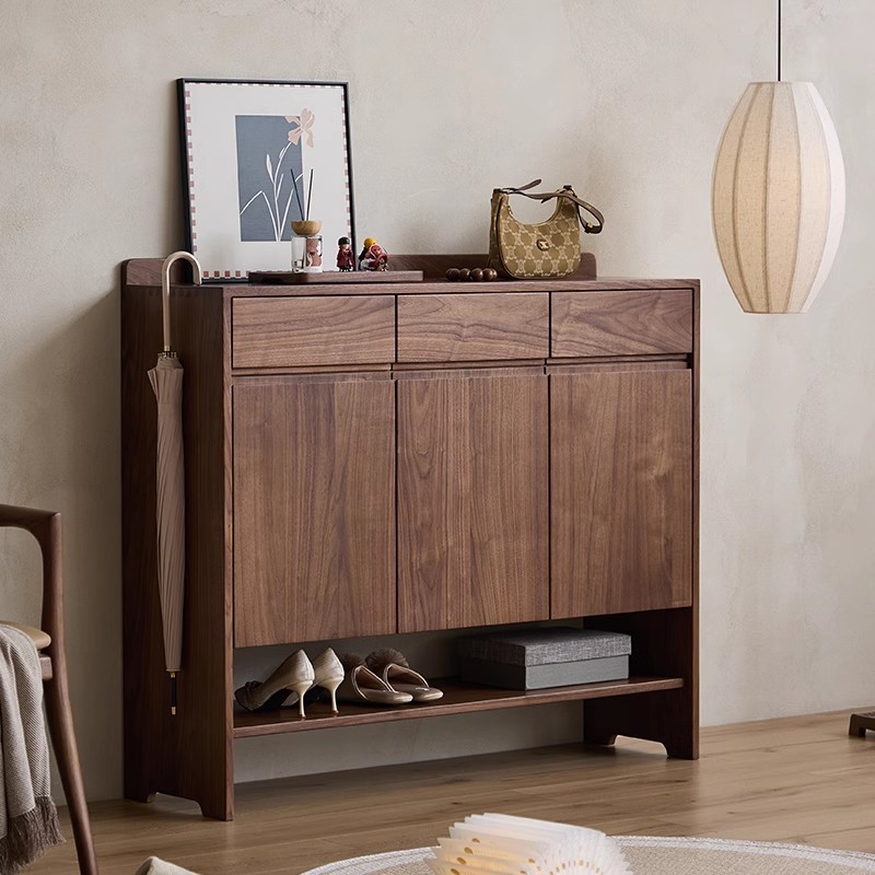 北米黒胡桃木下駄箱全実木入戸玄関キャビネット現代シンプル桜桃木大容量収納キャビネット