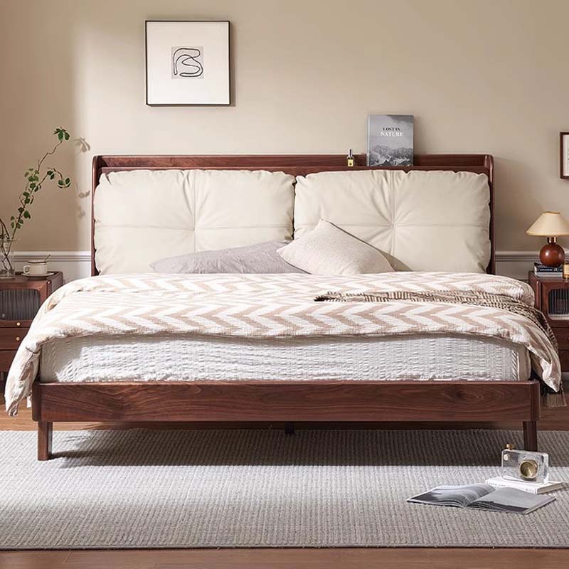 北米黒胡桃木ツインベッド真皮ソフトベッド桜木現代シンプル全実木大ベッド主寝ベッド