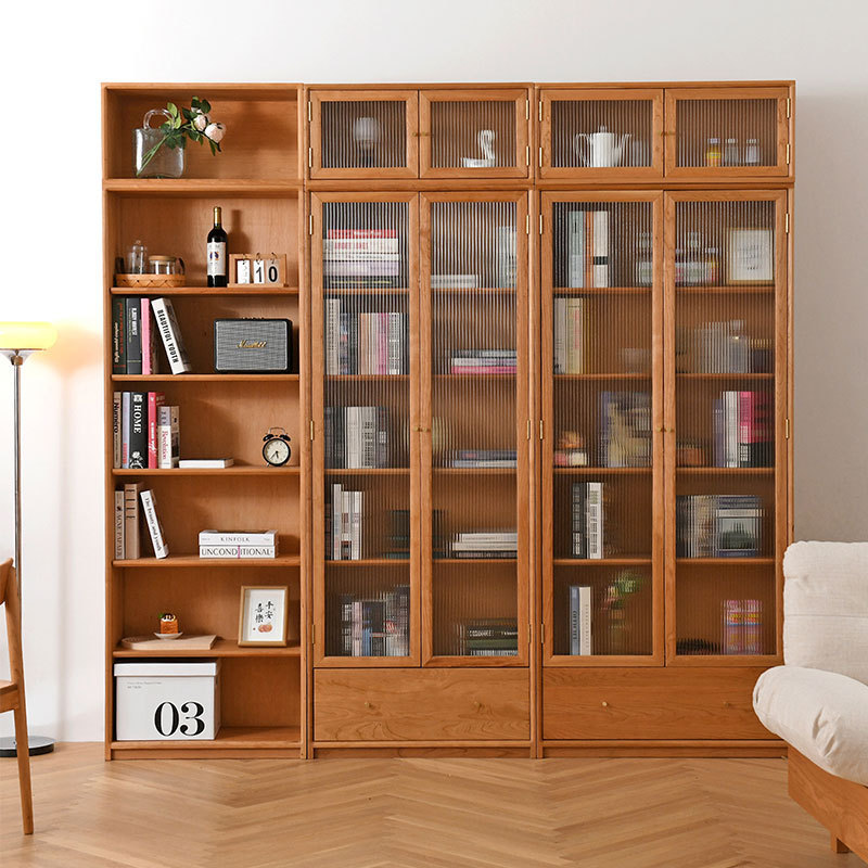 全実木本棚日本式家庭用北米さくらんぼ木着地本棚新中国式ガラス扉付き展示戸棚