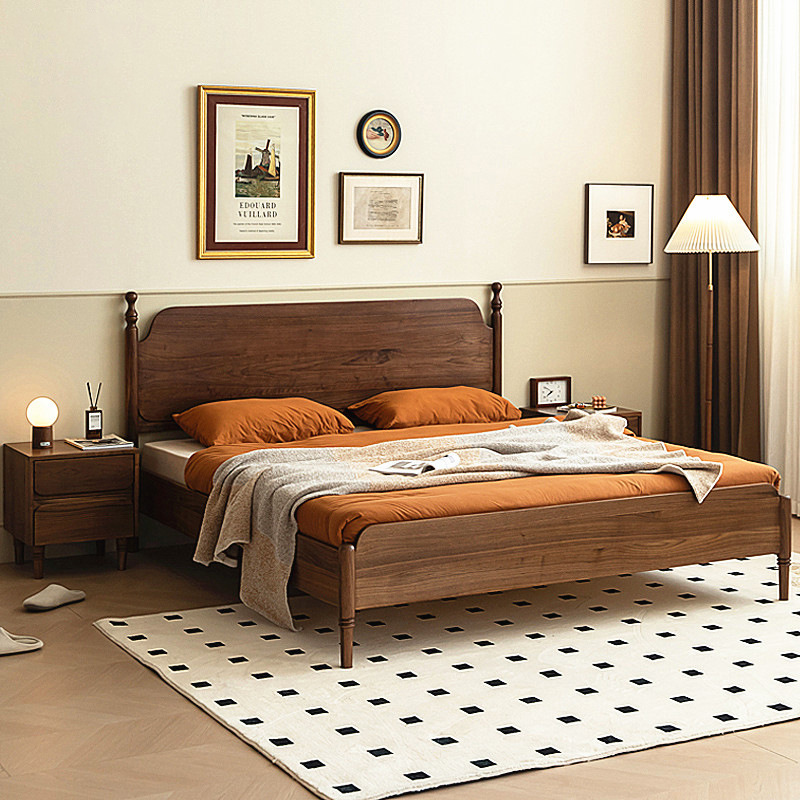 北米黒胡桃木床アメリカレトロ実木床現代シンプル寝室大ベッド桜木1.8ツインベッド