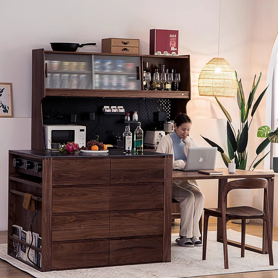 北欧の黒胡桃の木の全実木の島のテーブルは一体で伸縮できます。