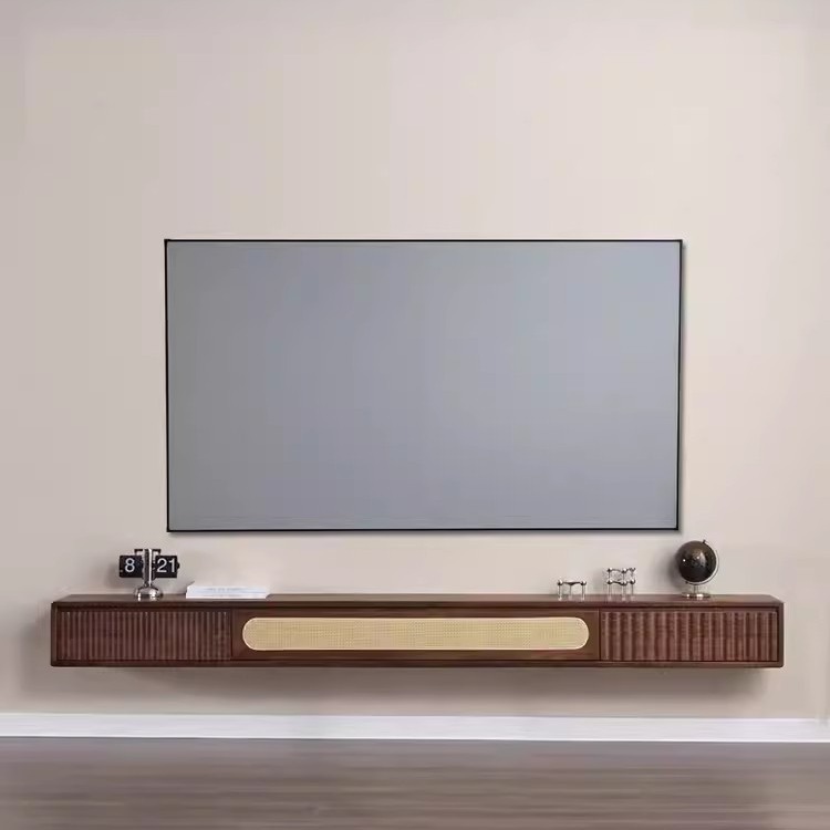 黒胡桃木テレビキャビネット吊り戸棚壁掛け全実木キャビネットシンプル現代藤編吊り式リビングテレビキャビネット