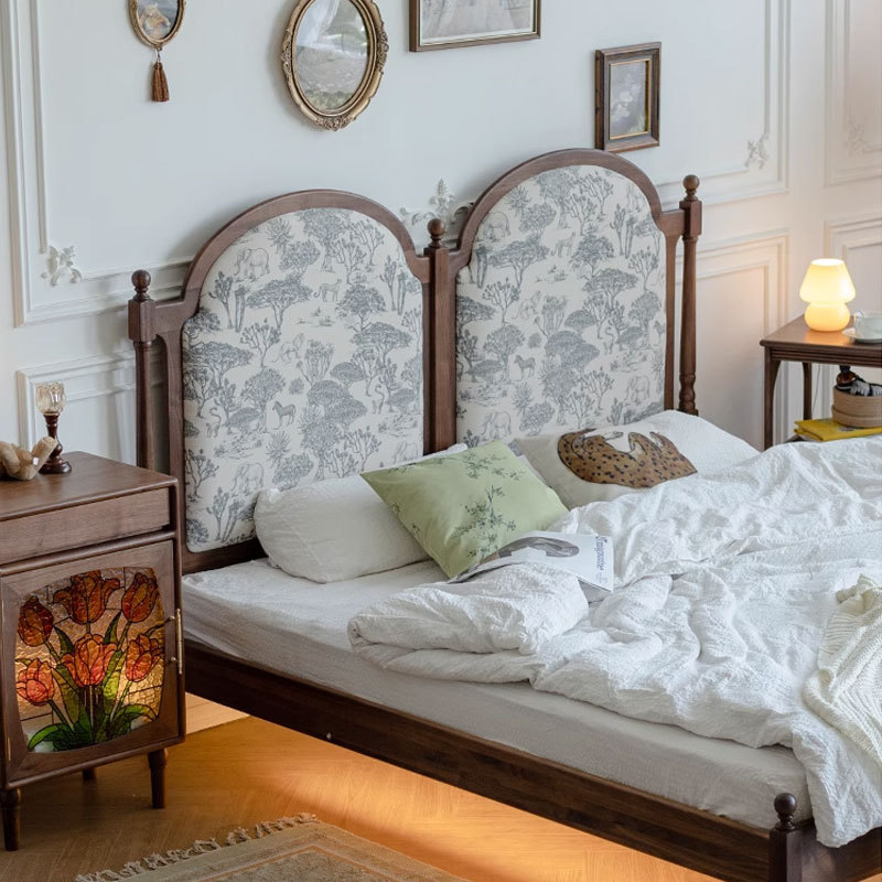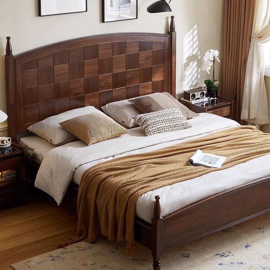 北米黒胡桃木アメリカ式レトロベッドソフトバッグ実木ベッド桜木ダブルベッドシンプル布芸主寝ベッド