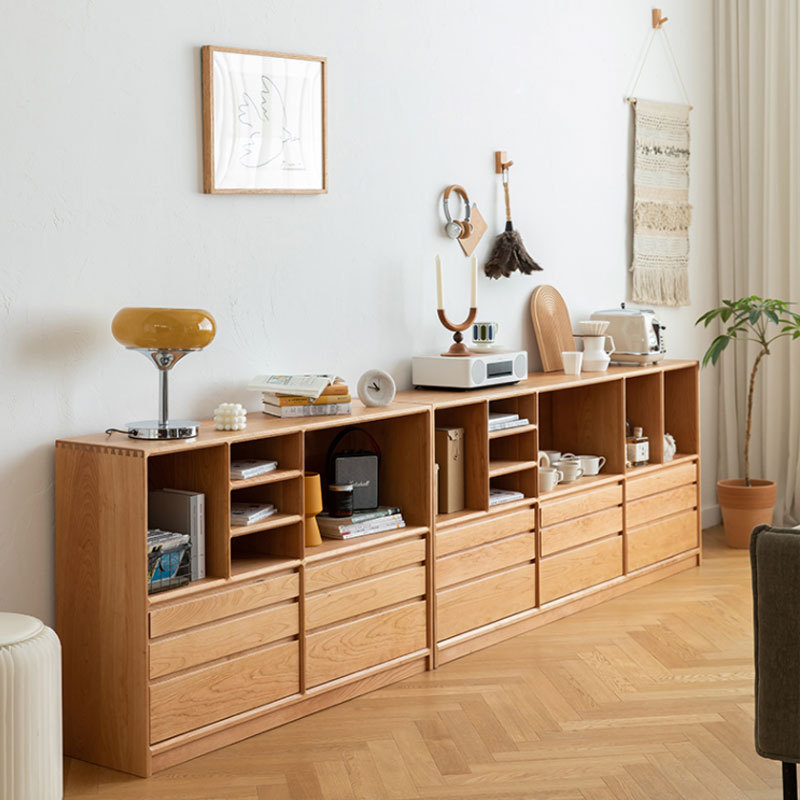 日本式の北欧の実木の低い本棚の桜の木は壁の組み合わせの棚に寄りかかっています。