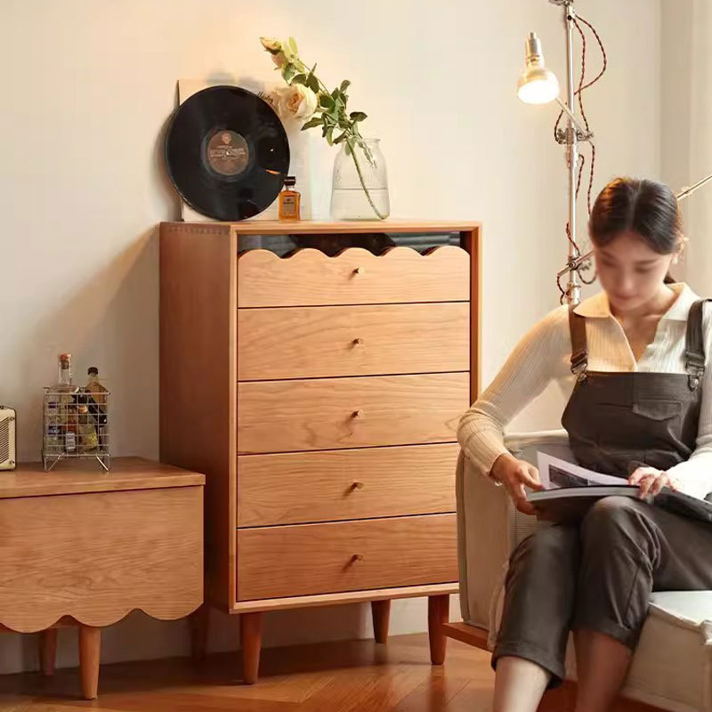 北欧シンプルな実木桜木五斗戸棚日本式シンプルな小戸型多機能ロッカー黒胡桃サイドキャビネット