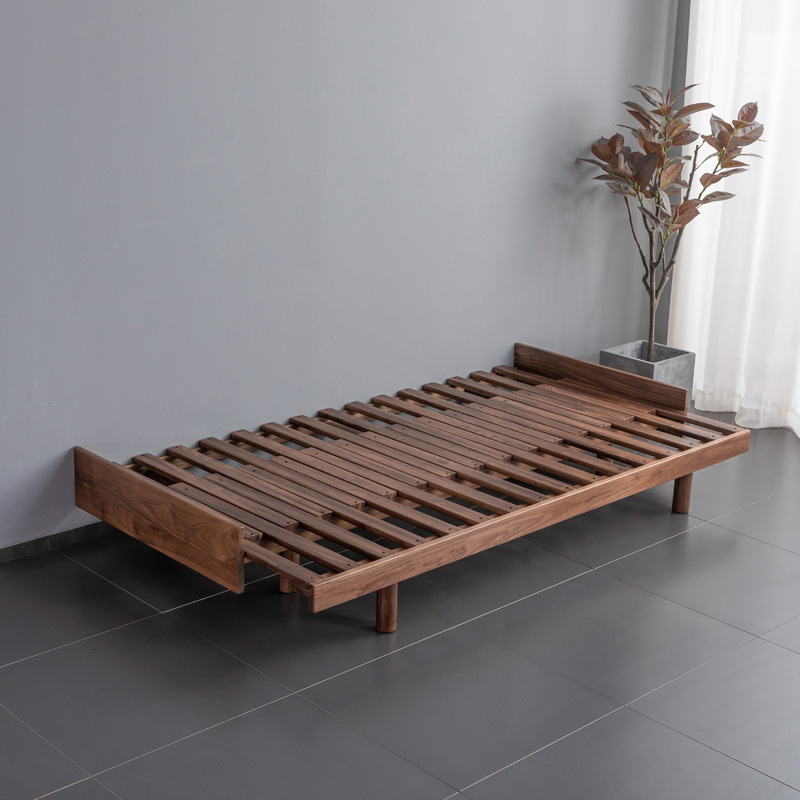 黒胡桃木ソファーベッド実木伸縮ベッド押し引きベッド客間引き畳ベッド北欧日本式多機能