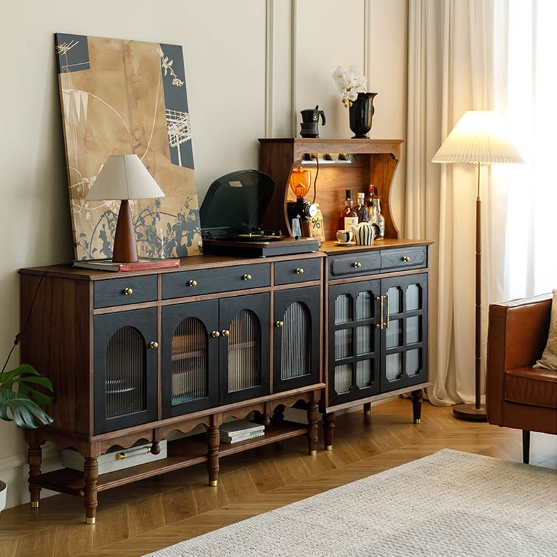 北アメリカの黒胡桃木白蝋木レトロなサイドキャビネットの軽い豪華な中古風贅沢なワインキャビネットの一体黒いアメリカ式の貯蔵物