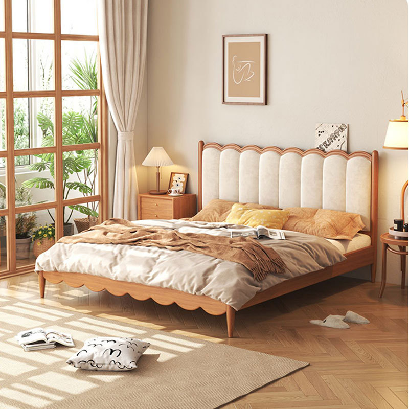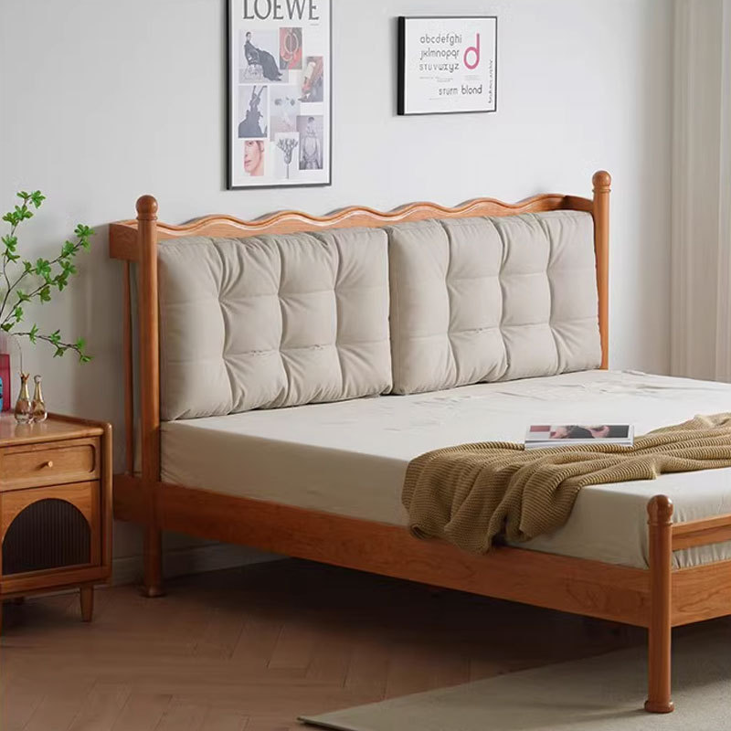 チェリー木製フルソリッドウッドベッドレトロ小戸型1.5mクリームインスタ風家具モダン北欧1.8mダブルベッド