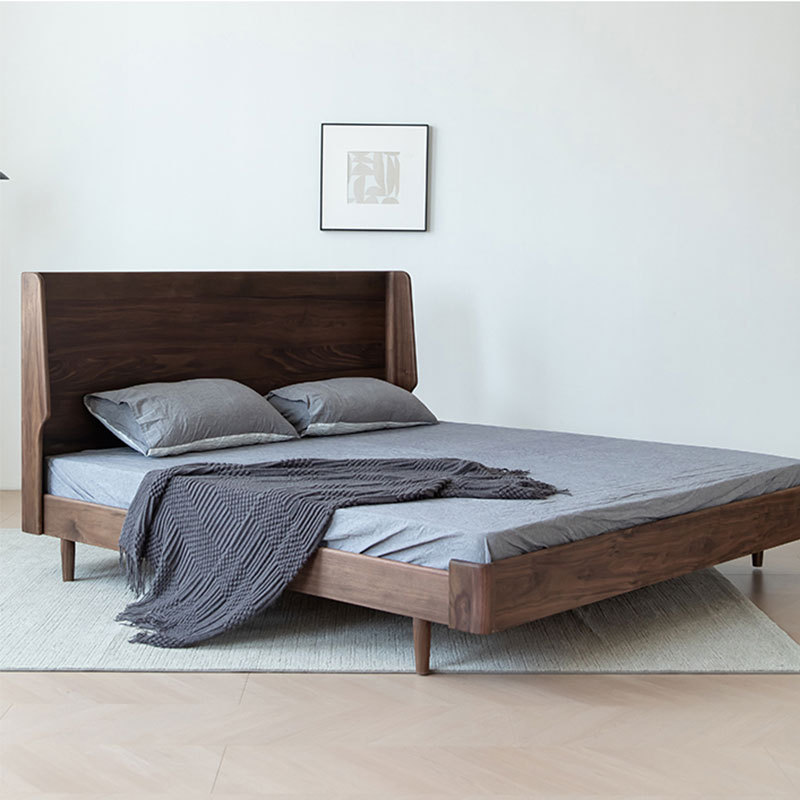 北米黒胡桃木猫耳床シンプル北欧懸濁ベッド1.5メートル1.8メートル児童ベッド桜木畳