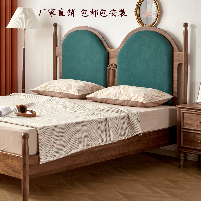 北アメリカ黒胡桃木レトロ実木ベッドエジンバラソフトバッグベッド北欧風ツインベッド主臥シンプル結婚ベッド