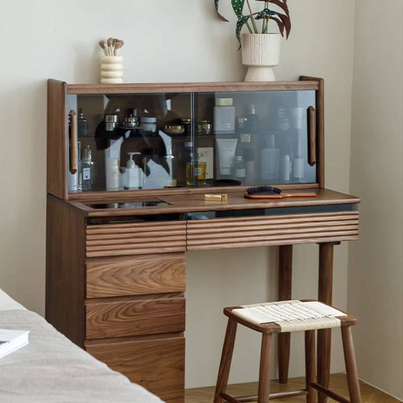 軽豪華高級北米黒胡桃木化粧台現代シンプル全実木ガラス押し引き化粧テーブル