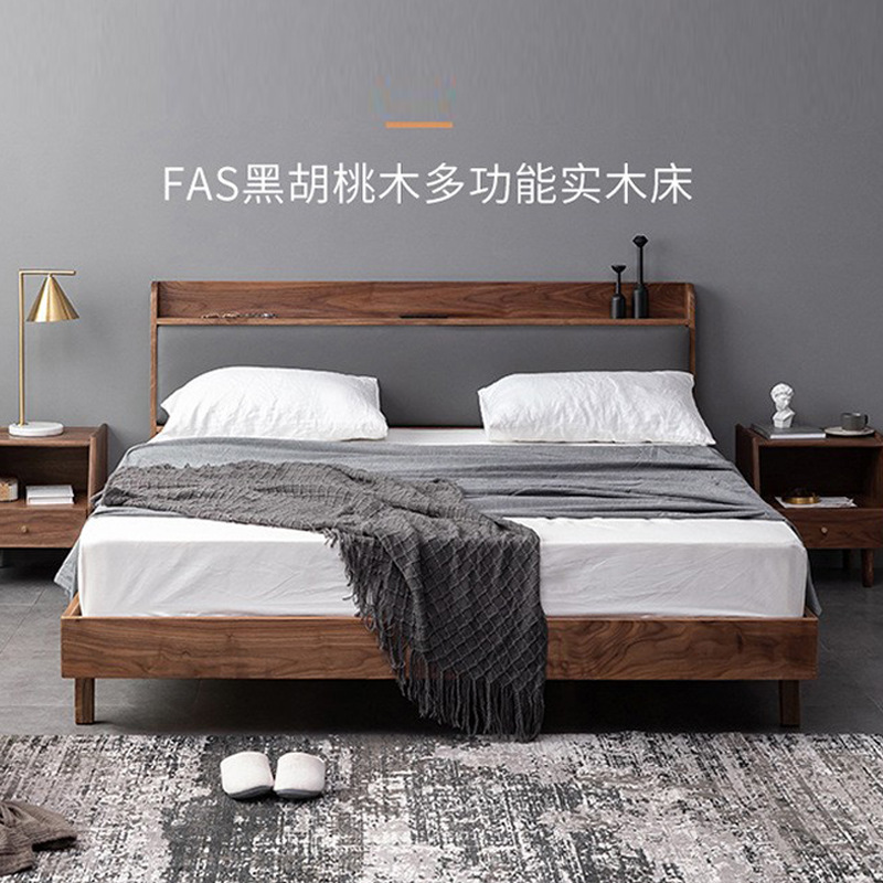 北米黒胡桃木床日本式桜木全実木ツインベッド1.8メートル結婚ベッド寝室ベッド1.5メートルベッド
