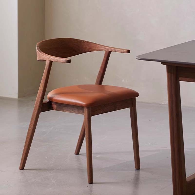 北米黒胡桃木実木椅子現代シンプルソフトバッグ背もたれ椅子リビングレストラン桜木レジャー実木椅子