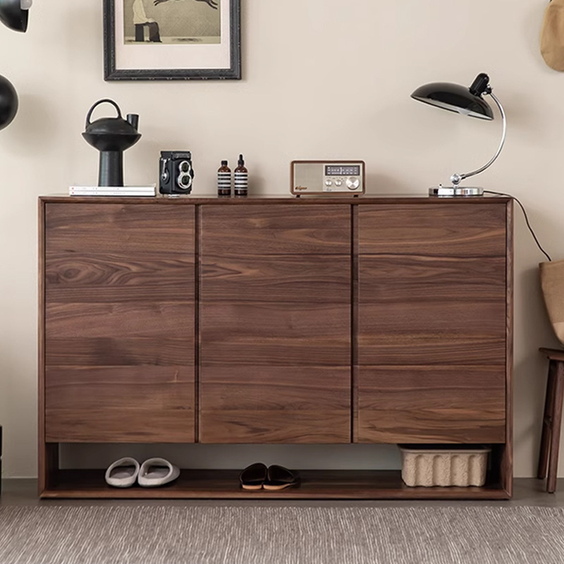 実木下駄箱大容量黒胡桃木入戸玄関戸棚現代シンプル桜桃木仕切り収納ロッカー