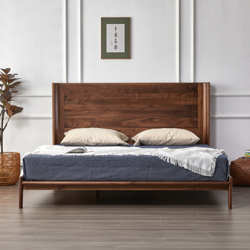 全実木北米黒胡桃木床桜木飛行ベッド白オーク主臥結婚ベッド北欧ツインベッド