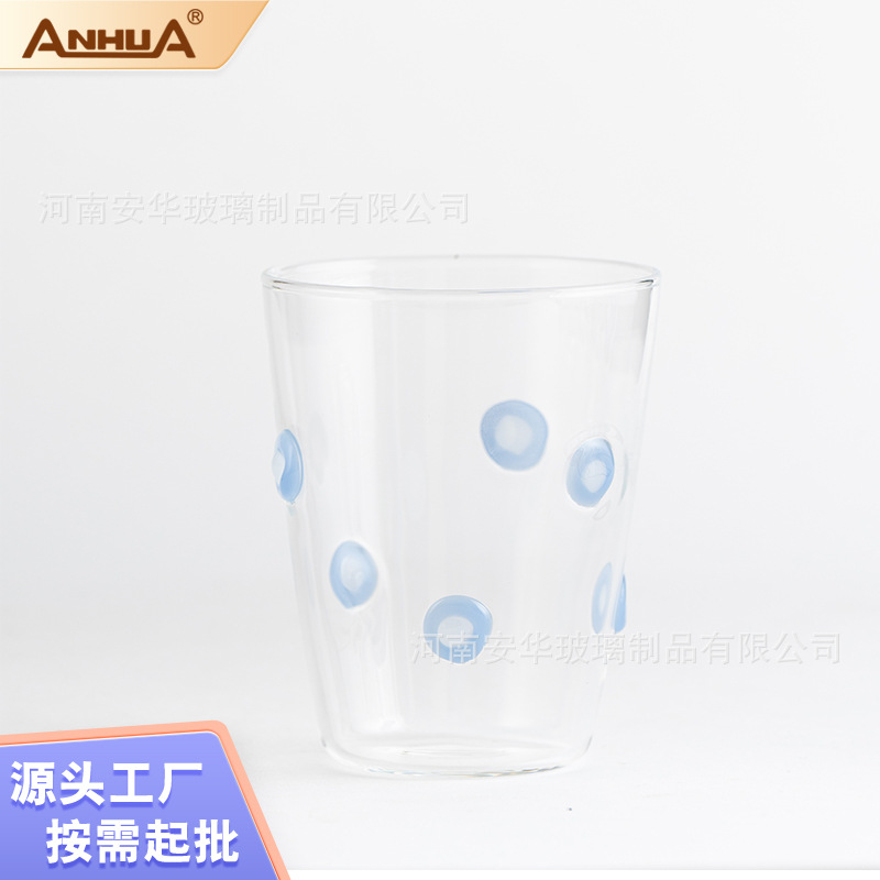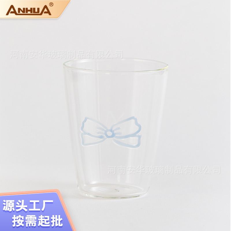 高颜値小众デザイン少女かわいいちょう结び波ポイントひっくり返し口ミルクジュースカップ朝食透明グラス