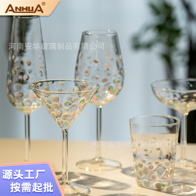 ヨーロッパのレトロな波の点の高い足のガラスのワイングラスの彩色のワイングラスの高い顔の値の中古のブランデーのシャンパンの杯