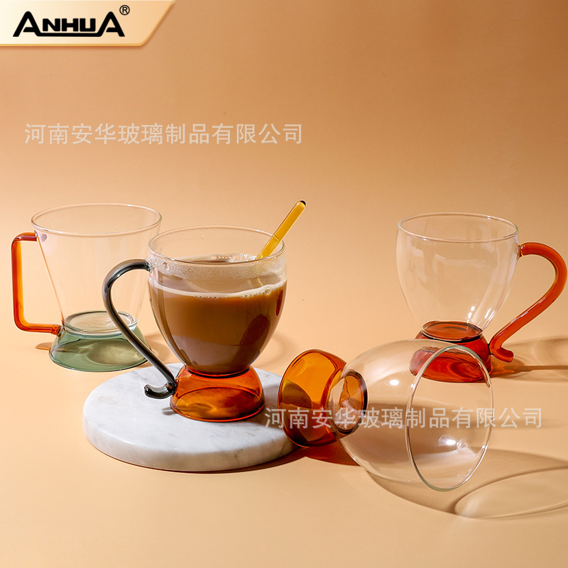 グラスカップ家庭用セット高颜値耐高温オフィスカップハンドル付き特別きれいなカップ