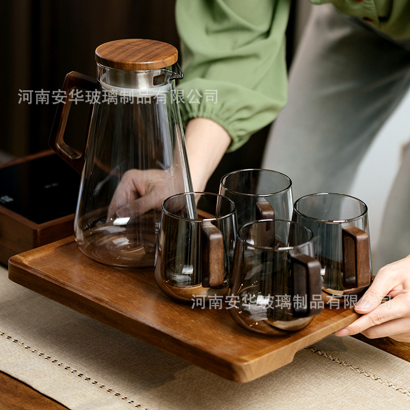 2024年新型冷水ポットガラス耐高温家庭用セット冷水ポット大容量高級ティーポット干しコップ