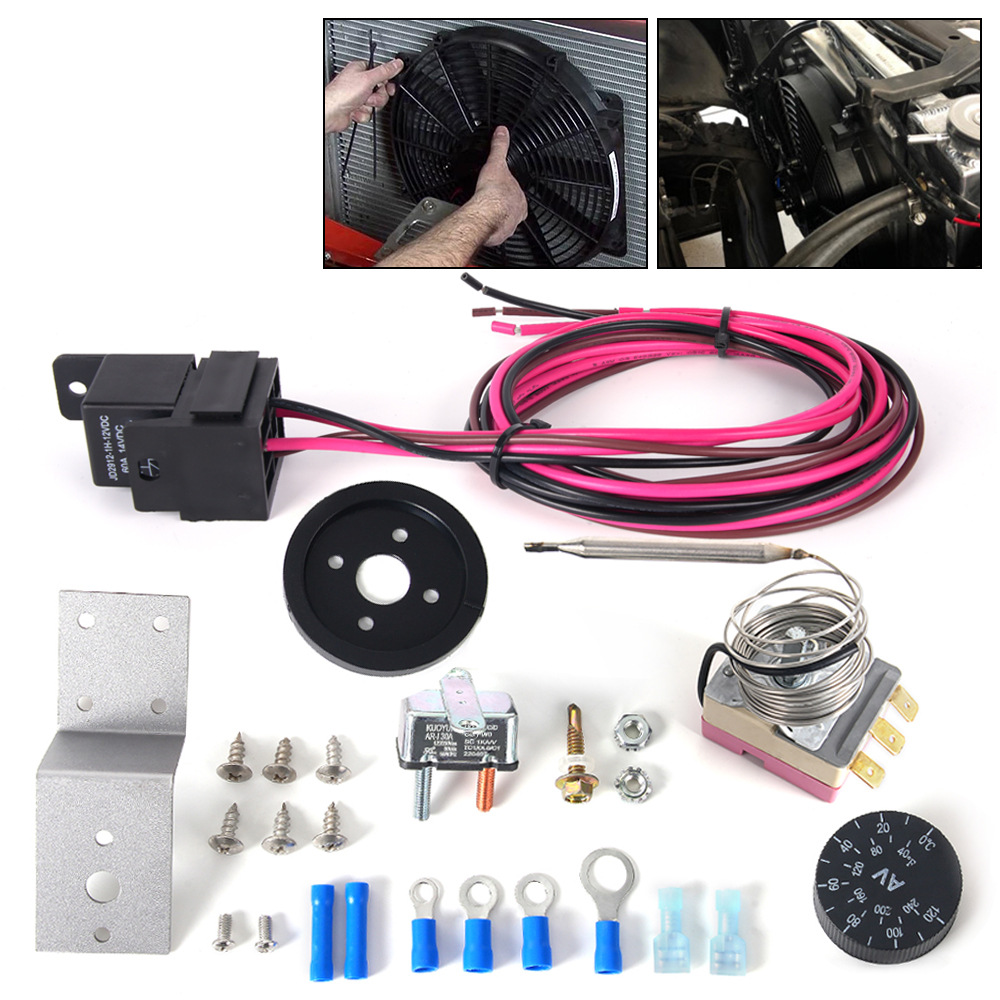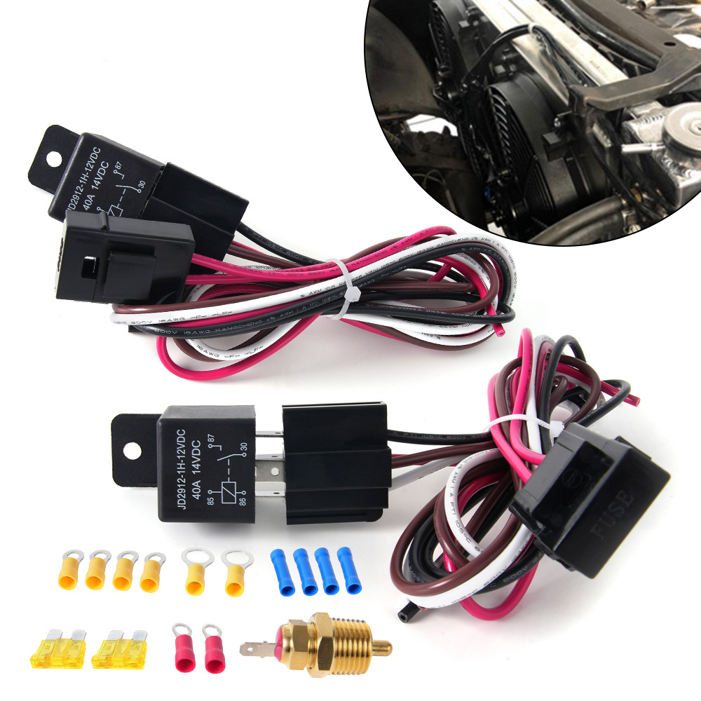 デュアル電動冷却ファン配線ハーネスキット 185 オン 175 オフ サーモスタット 40A 自動車リレー配線ハーネスクロスボーダー