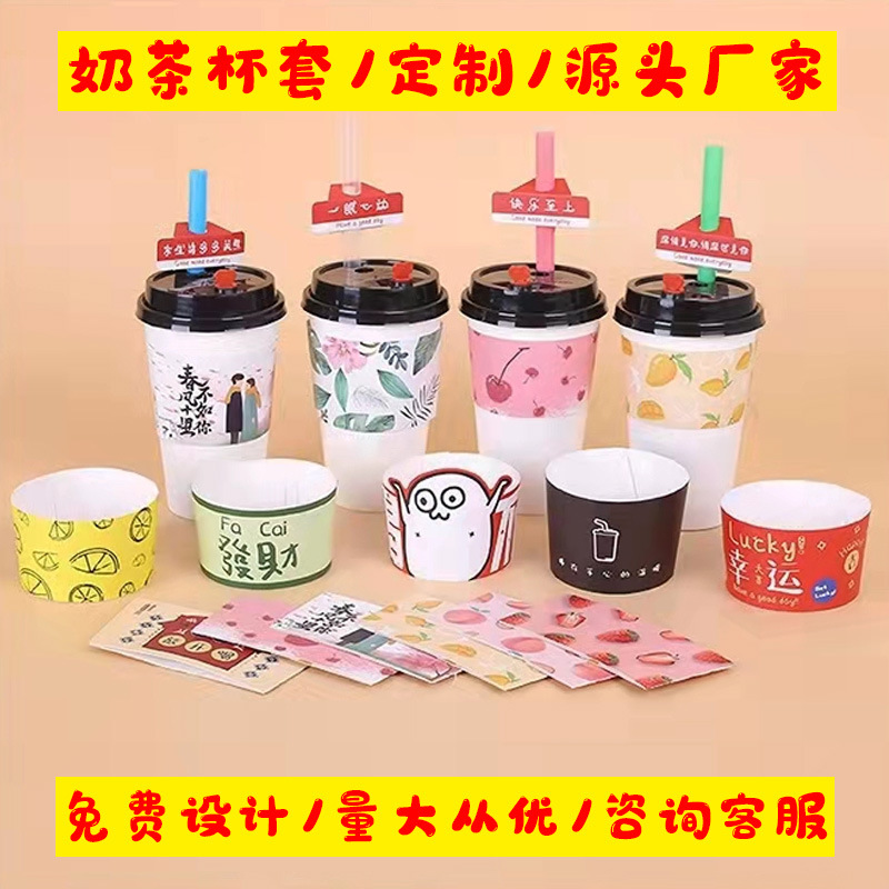 使い捨てティードリンクコーヒーペーパーカップ蓋付き厚みのある段ボールミルクティーコールドドリンクカップ断熱フリーデザインカップカバー