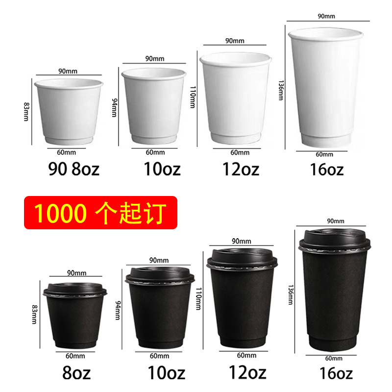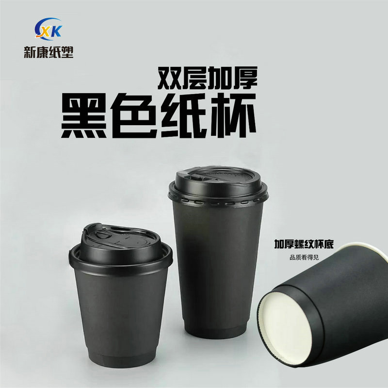 使い捨てコーヒー黒と白の厚みのある二層中空ホットドリンクミルクティーペーパーカップ、最小ロット 1000 個、小ロット印刷とカスタマイズ