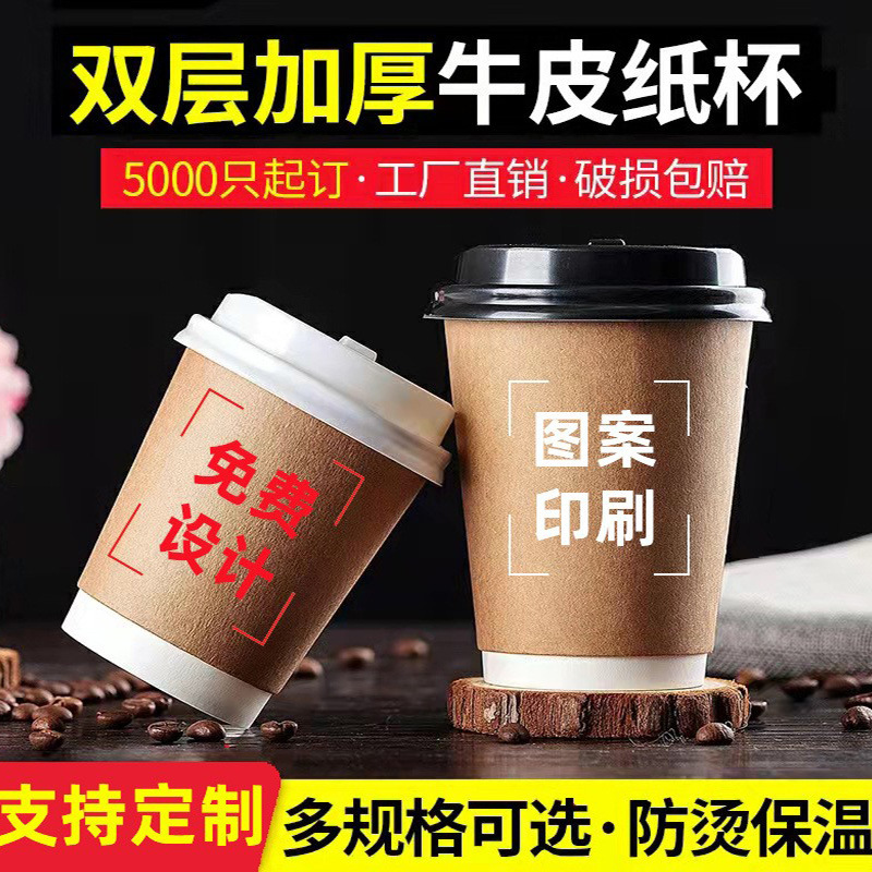 使い捨て増粘クラフト紙中空コーヒーカップ商業二層ホットドリンクミルクティーペーパーカップコーティングされたテイクアウト包装カップ