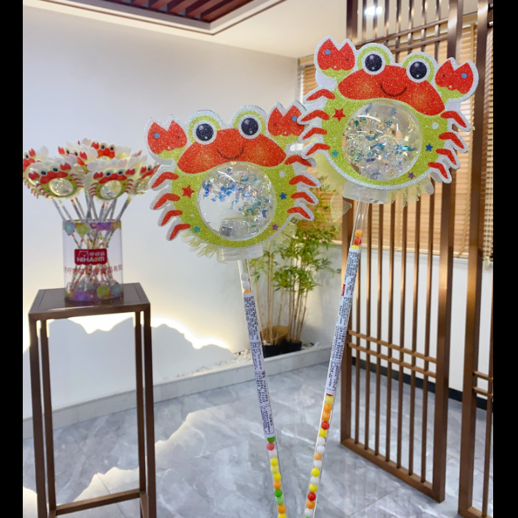 新型ネット赤閃光アニメ蟹尼波球星空球魔法棒子供帯キャンディー発光玩具